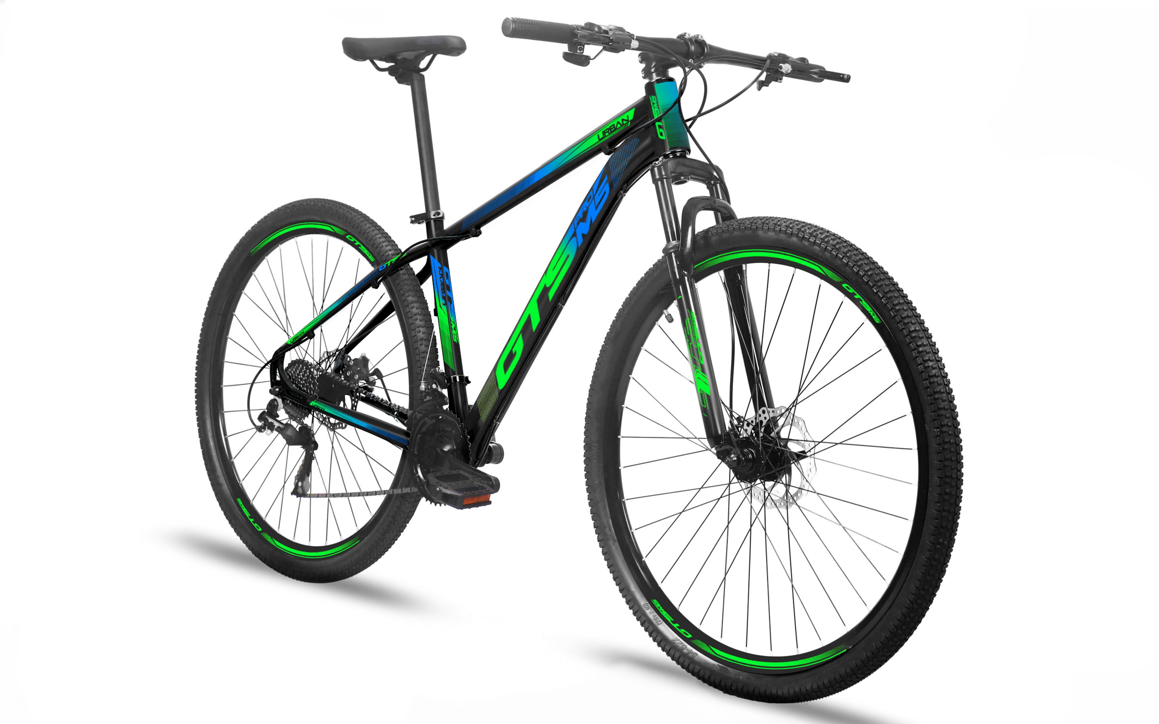 Bicicleta Aro 29 GTSPROM5 Urban Câmbio Shimano Freio a Disco 21 Marchas-Preto/Verde/Azul-Mountain Bike - 15De R$ 1.499,90 Por R$ 959,90em até 12 de R$ 90,71